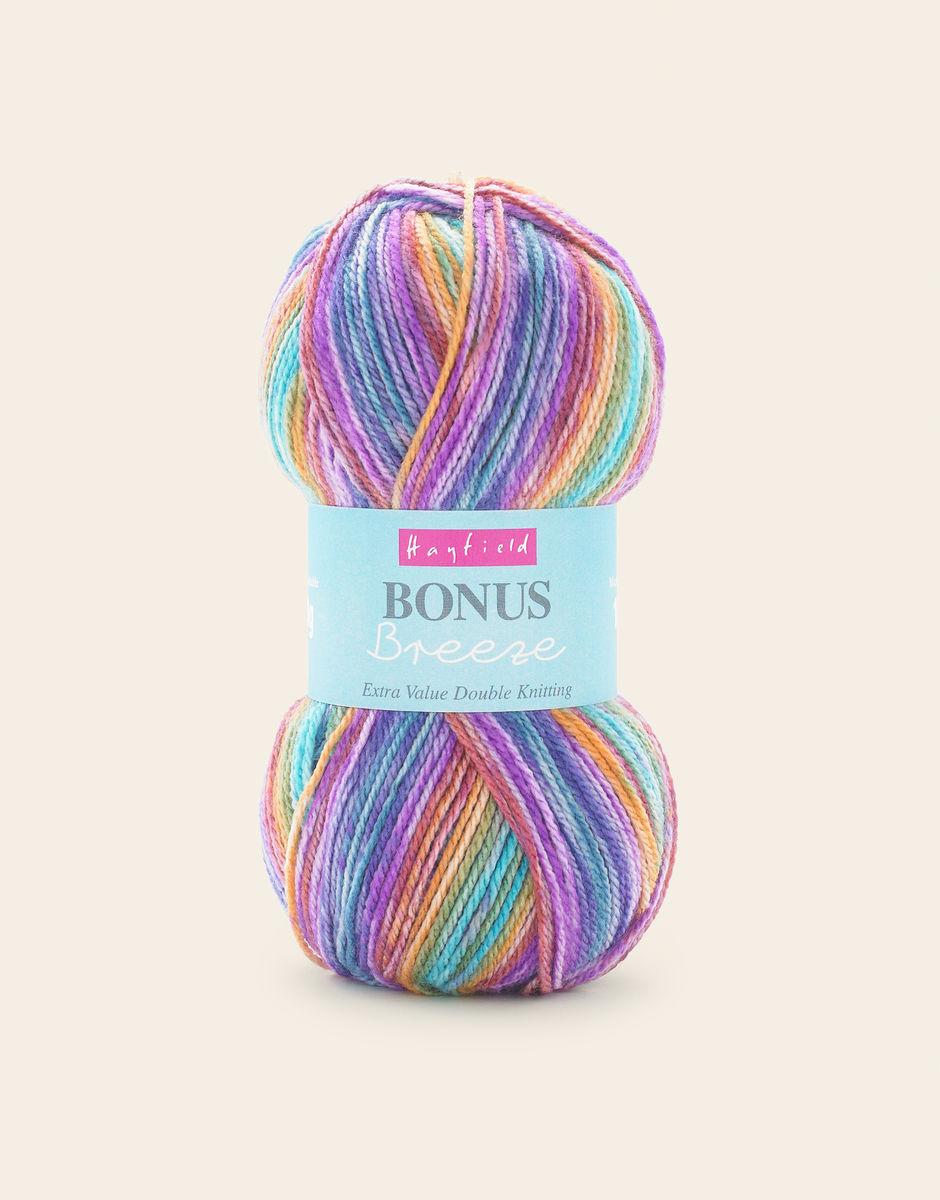 Bonus Breeze adds a vibrant mix of colours to the Hayfield Bonus range. With a fantastic selection of shades that create stunning stonewashed stripes in your knits, Breeze is the easiest way to jazz up your next project. Made from 100% super soft acrylic and suitable to put in both the washing machine and the tumble dryer, this great value yarn is a great all rounder.