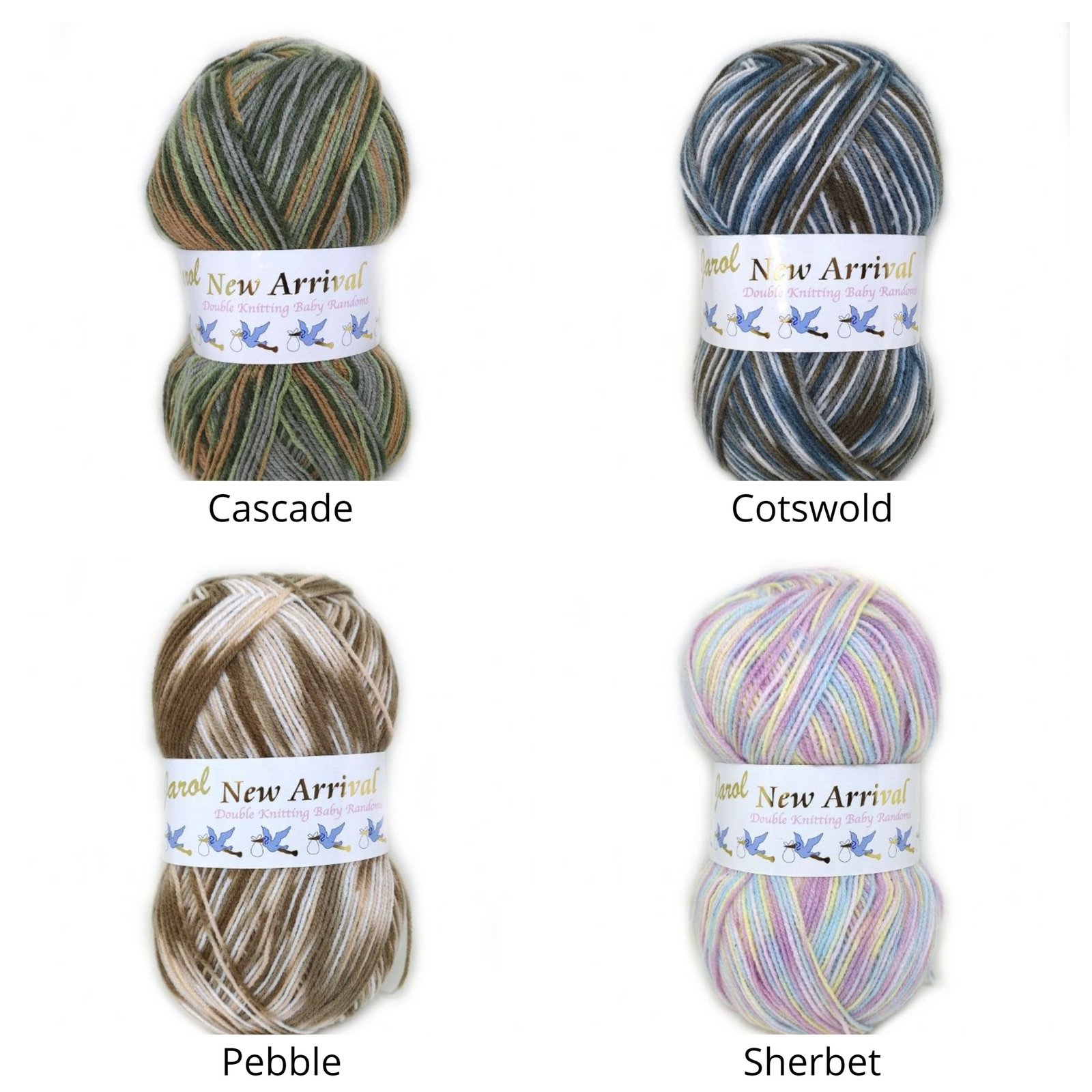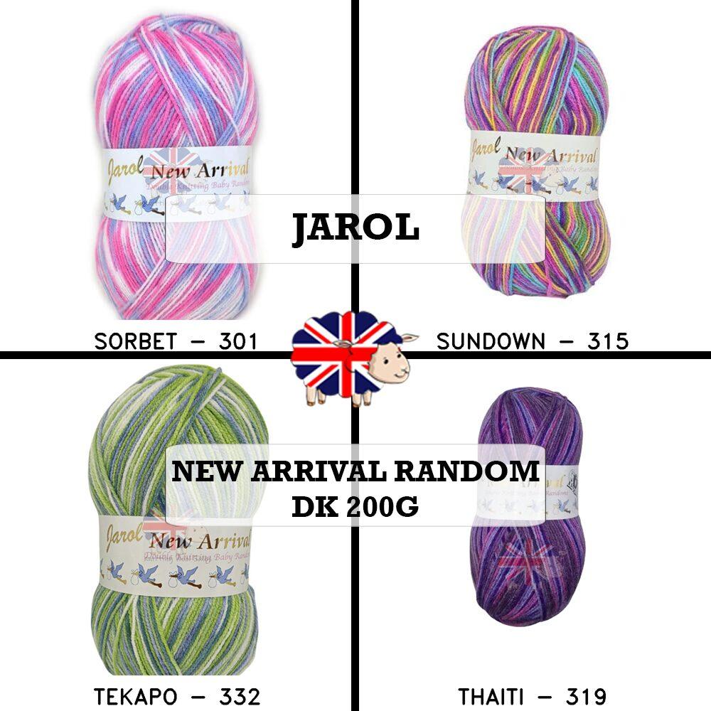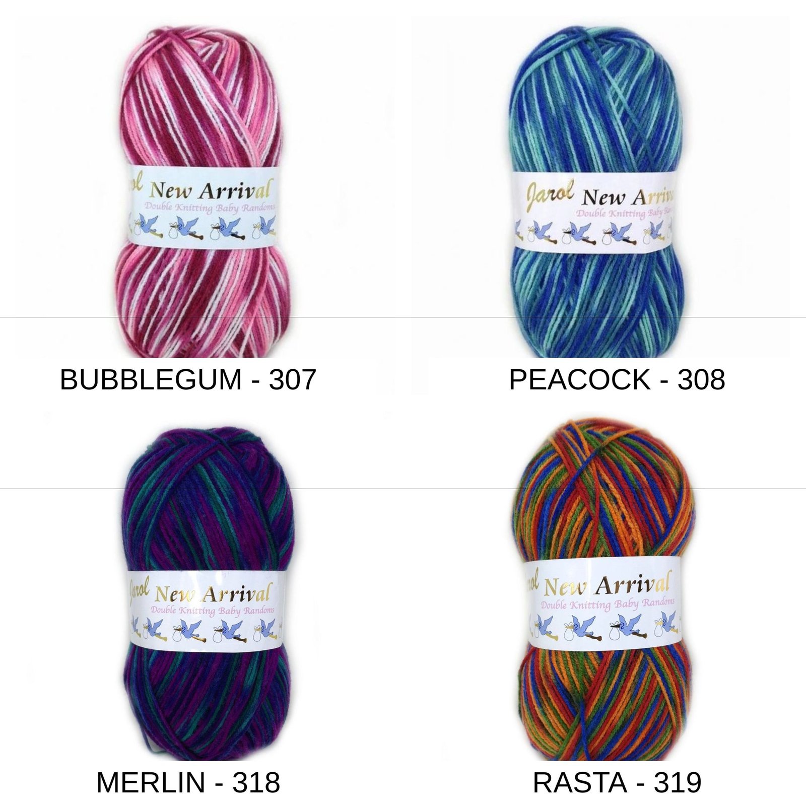 Jarol New Arrival Random DK is a double knitting yarn that comes in 18 fantastic multi-coloured shades that knit totally random. This yarn is great for creating colourful and unique garments for babies, children and adults. Jarol New Arrival Random DK is made of 100% premium acrylic, which makes it soft, durable and easy to care for. It knits to most double knitting patterns and has a generous yardage of 480m per 200g ball.