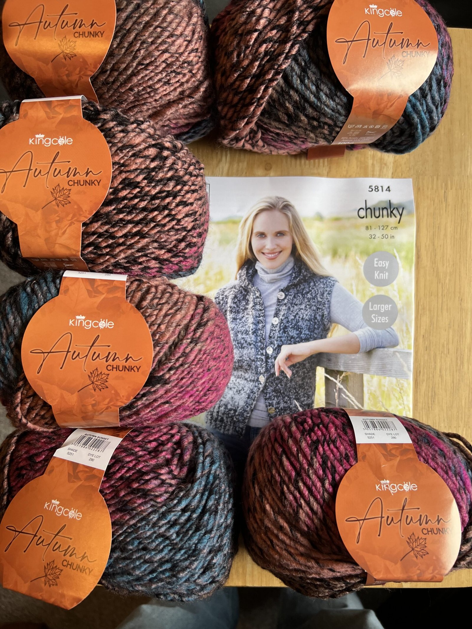 King Cole Autumn Chunky 6 x 100g Shade Autumn Sunset + Free Pattern