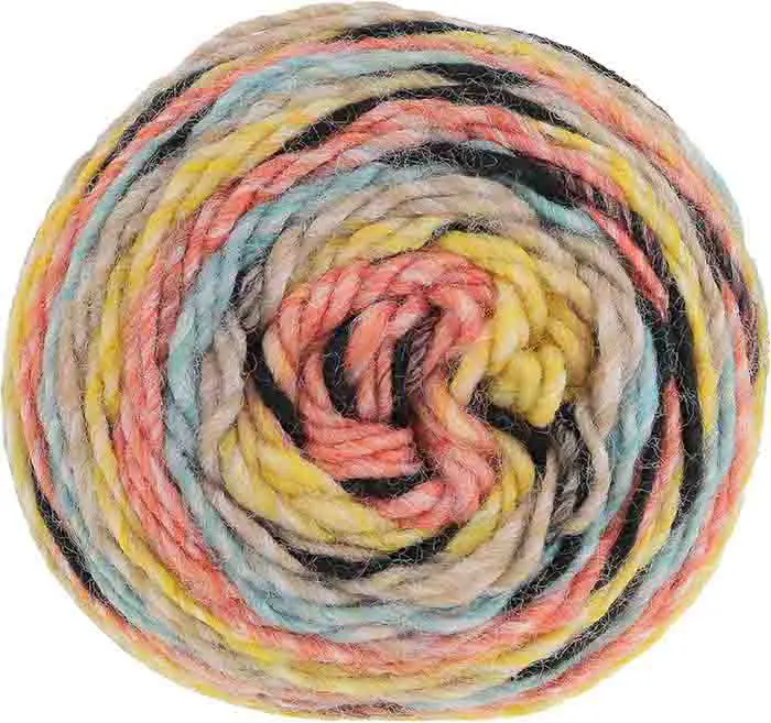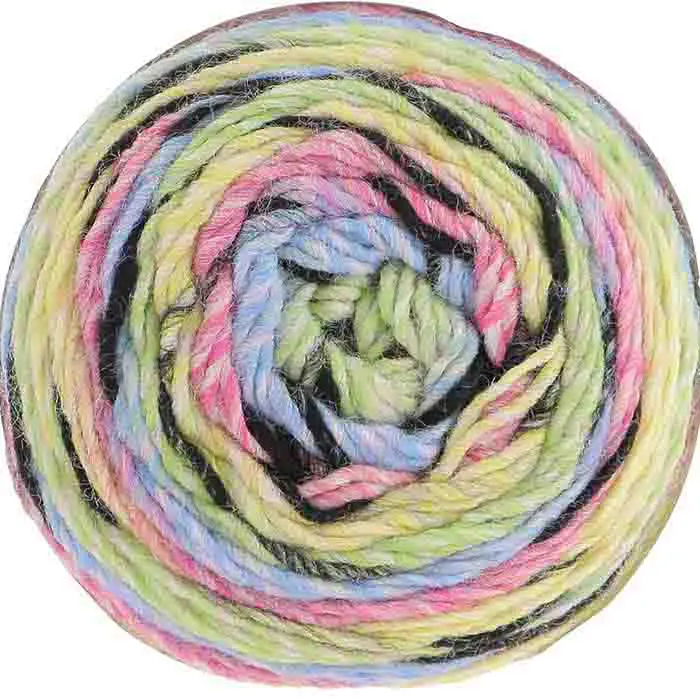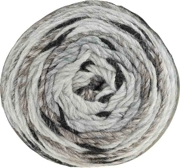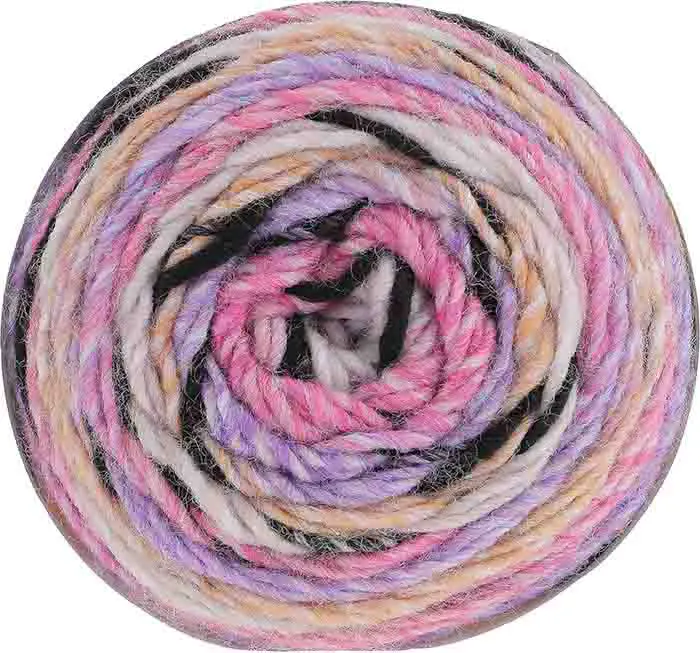 Live on the wild side with this unique cake yarn. Safari Chunky works up into fun, variegated pattern with animalistic stripes.