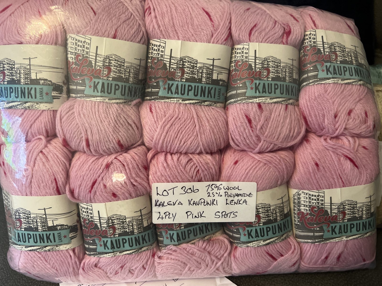 Be the first to review “Lot 306 4ply 75% wool 25% polyamide Pink with spots”