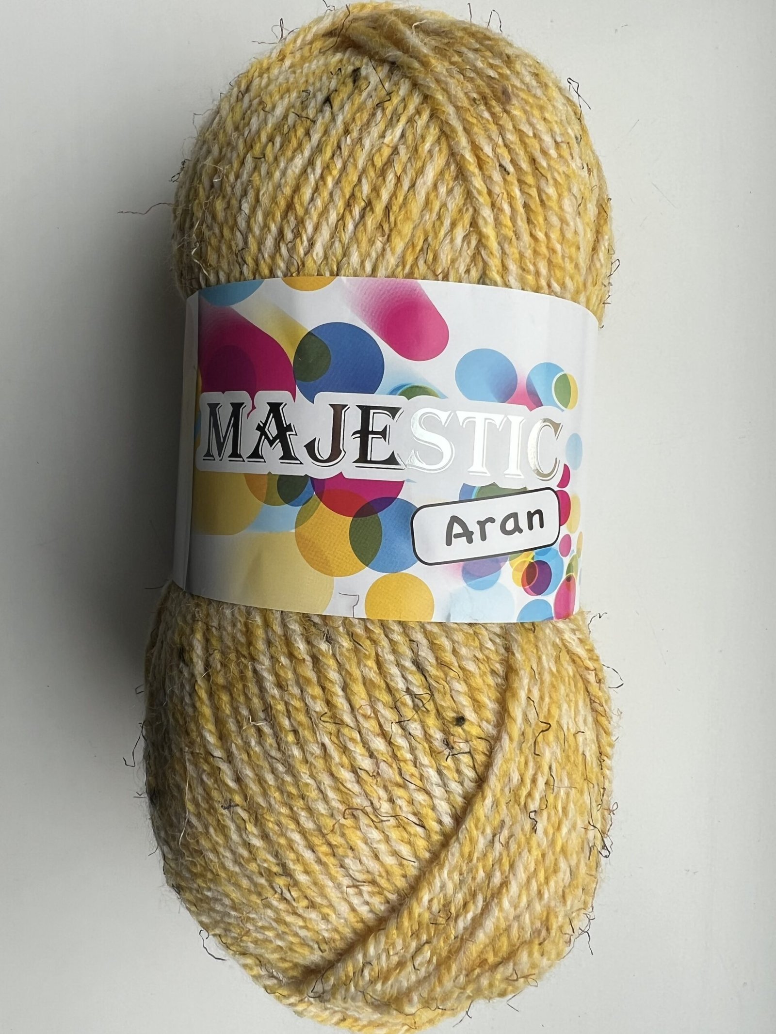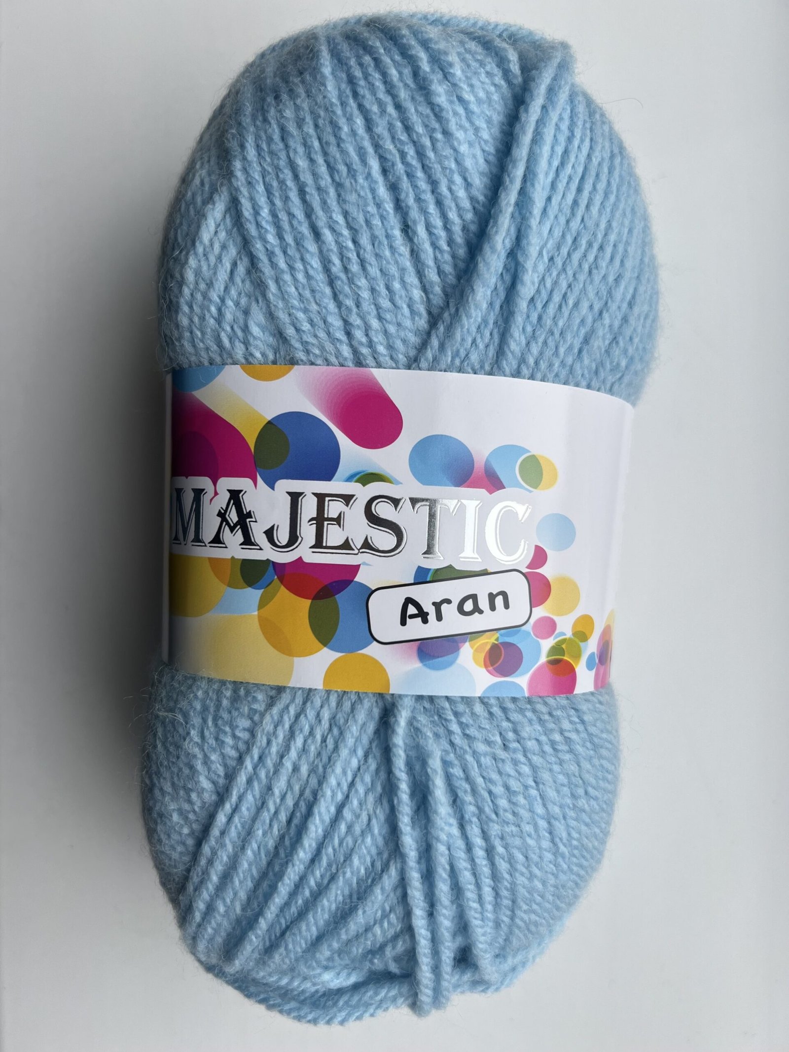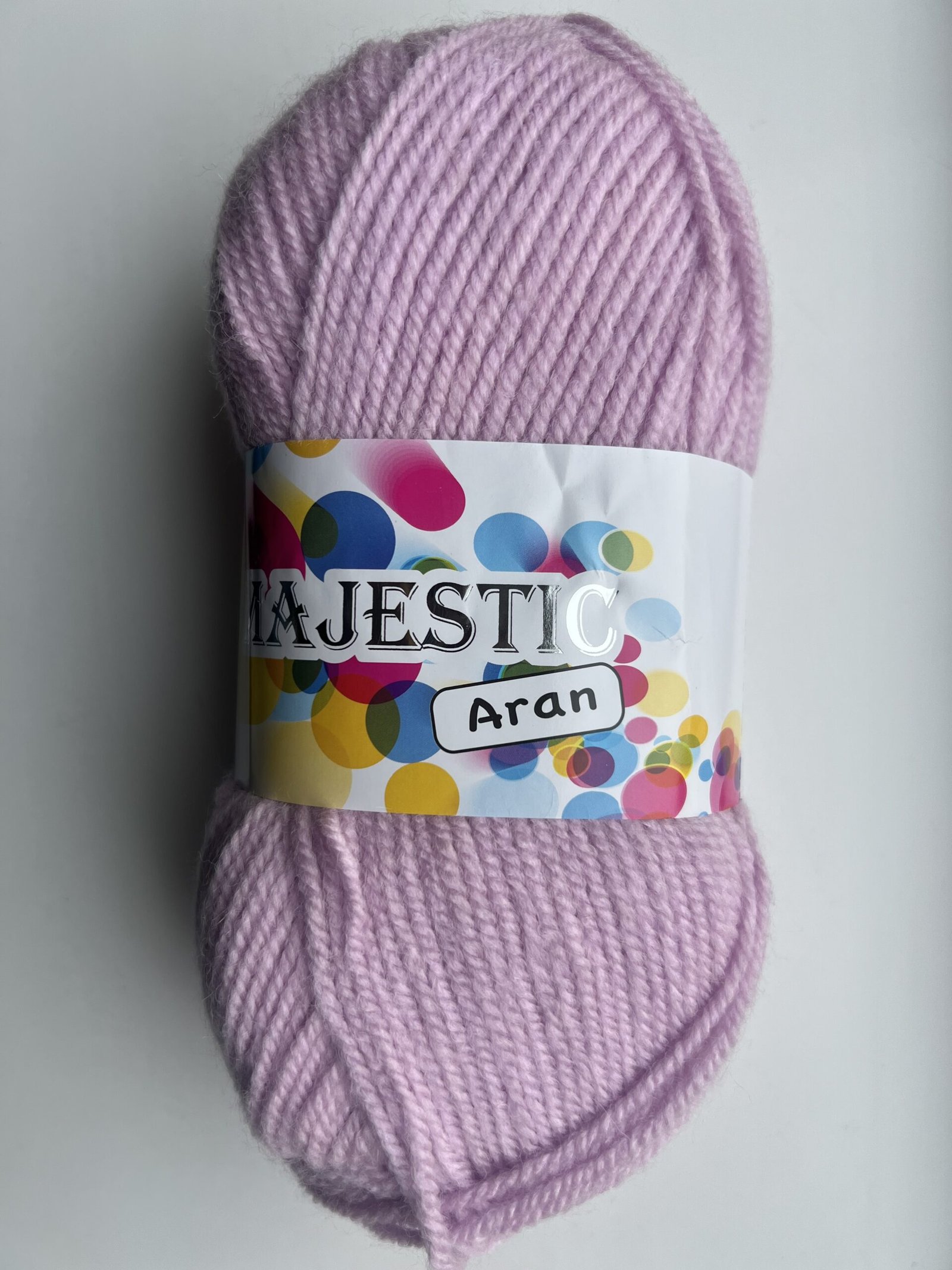 Majestic Aran 100g is a mixed fibre yarn that is mainly acrylic. It comes in 100g balls with solid and marled colours. It is aran weight and can be knitted on 5mm needles. It is a one off lot product.